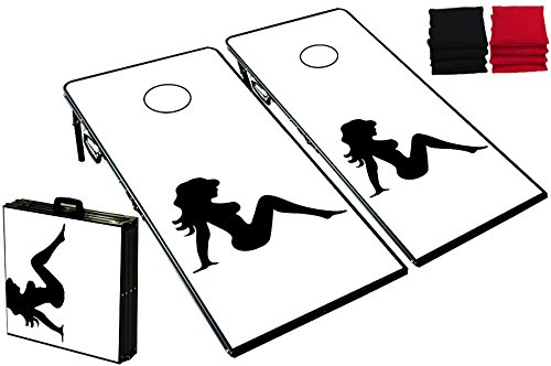 Cornhole Boards Bag Toss Game Set - Trucker Girl Graphic (33 Other Graphics Available)