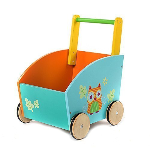 Labebe DIY Toy Box Baby Activity Walker with Wheels Strolling Wooden Pram and Stroller for Nurturing Dolls--Owl