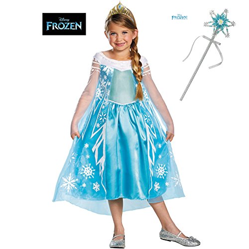 Girl's Frozen Elsa Deluxe Premium Costume Kit with Wand - Medium